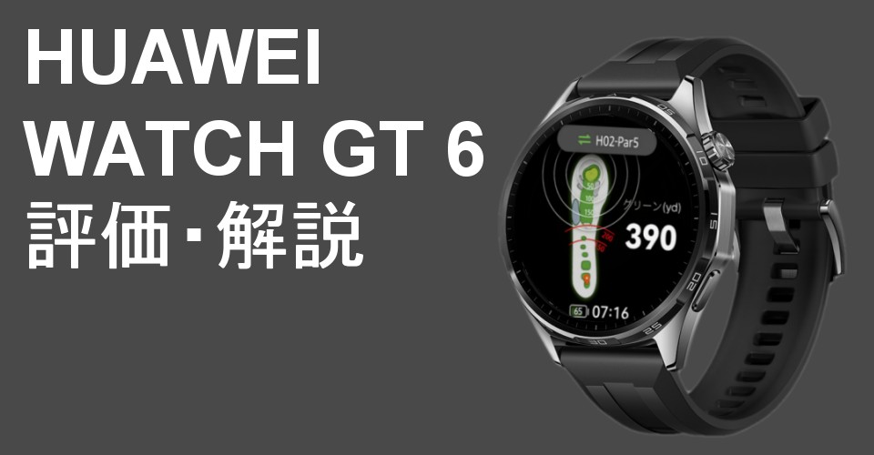ファーウェイのゴルフウォッチ(GPSゴルフナビ)、WATCH GT 6について、「画面表示」「操作性」「情報コンテンツ」「デザイン」「コスパ」の5つの項目別に評価しました(5点満点・平均3点)。