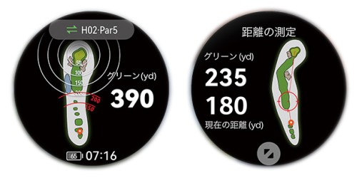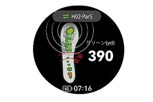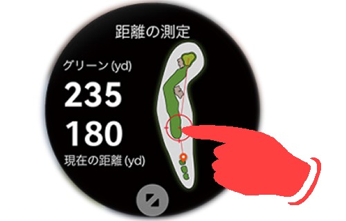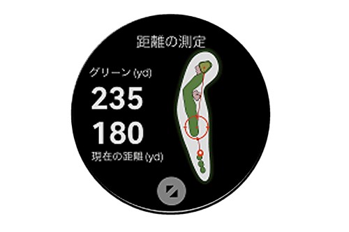 現在地とグリーンを起点に同心円が描かれているため、ボールをどこまで運ぶか、どれだけ残すかを視覚的に把握でき、戦略を立てやすくなっています。