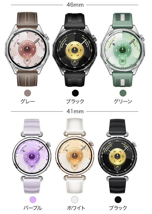 GT 6では前作同様に大小2サイズが用意されています。41mmモデルは従来と同じ1.32インチですが、46mmモデルは従来の1.43インチから1.47インチへ拡大され、表示領域が広がりました。