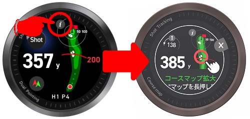 コースビューの画面中央を長押しすると拡大表示に切り替わり、コースの細かな形状を確認できます。