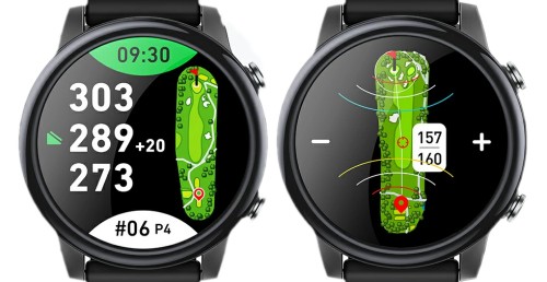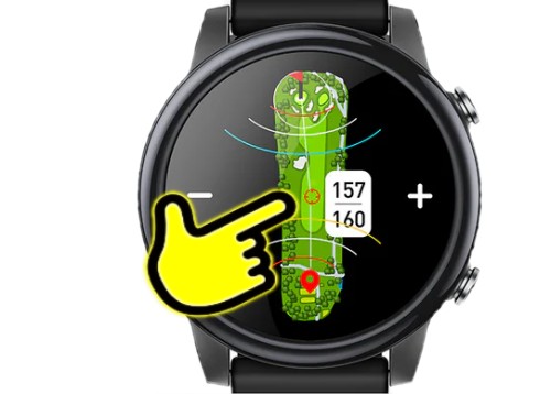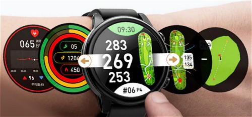 例えば、ショット感知によるスコア管理、残距離に応じたコース画面の切り替え、グリーンの回転表示といった自動機能は未搭載です。
