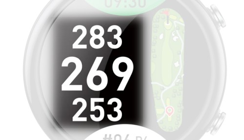 この画面は、グリーンまでの距離が数字で大きく表示されるのが特徴で、とにかく残距離を素早く・常に把握したいというタイプのゴルファーに適しています。