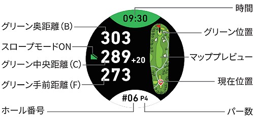 | その他 | 高低差機能 同心円(現在地側、グリーン側) ハザード距離(最大6件) |