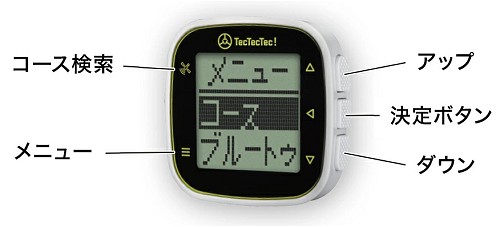 ゴルフ場、コースはGPSにより自動的に検索してくれますので、基本的にはゴルフ場で電源を入れてコースを選ぶだけで利用開始となります。