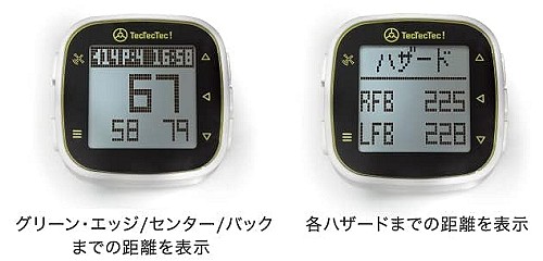 距離案内は、グリーンのセンター、フロント、バックの3種類、そして、このタイプとしては珍しくハザードにも対応しています。